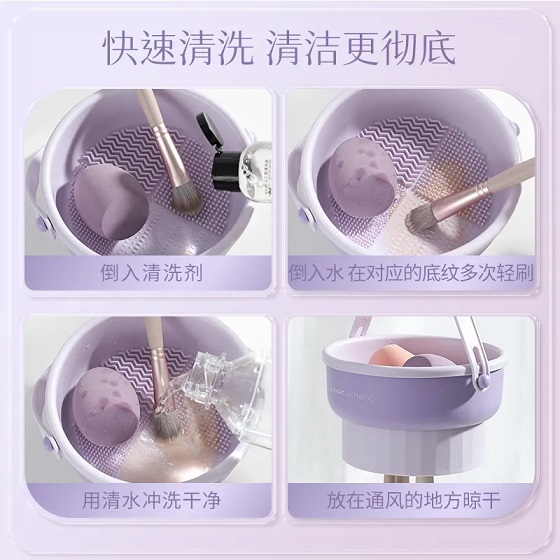 一物三用,超級有心思的【硅膠多功能化妝刷粉撲清潔盒】