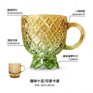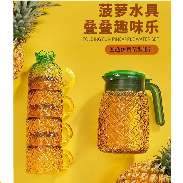 【招財—無鉛水晶玻璃菠蘿疊疊樂水壺】**品牌代工廠出品,用料純淨,無鉛水晶玻璃,安心使用**漸變顏色,採用立體雕花技術,仿真凹凸設計,如同真的菠蘿一般**一鍵開合壺蓋,U型壺口設計,流水暢快不外溢**加厚底座,放置穩固**疊疊杯設計,便於日常收藏**洗碗機安全,不懼脫色(請勿超過70℃)**菠蘿水壺容量1.1L**適用溫度0-80℃**一套包含:菠蘿水壺一個 & 菠蘿疊疊杯4個